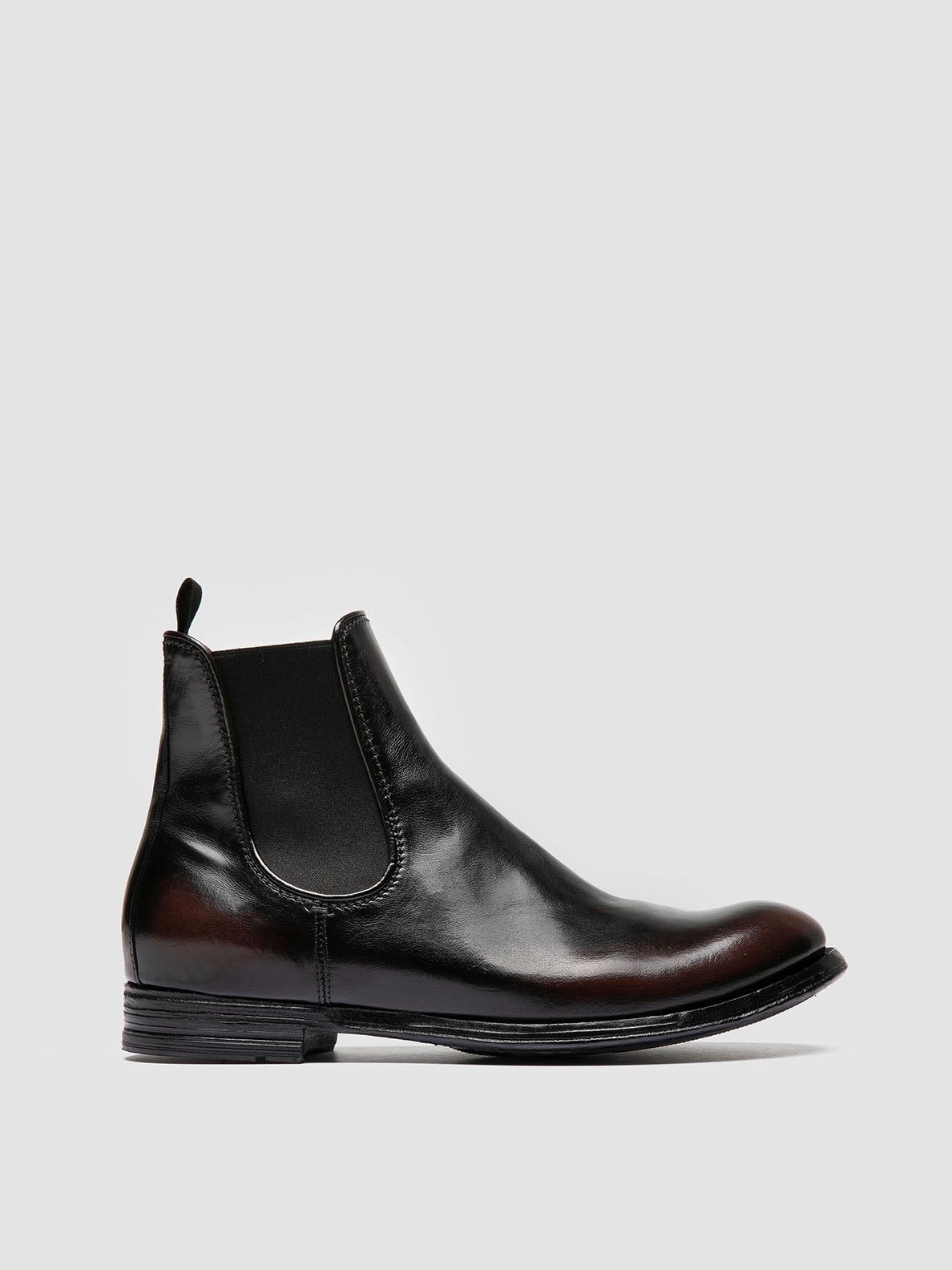Expertly handcrafted from premium smooth leather our comfortable Anatomia Chelsea boots feature an airbrushed coffee-toned finish rounded almond toe classic brown stretch fabric side accents back loop-tab a stacked leather sole with classic square heel and non-slip rubber inserts on the outsole.