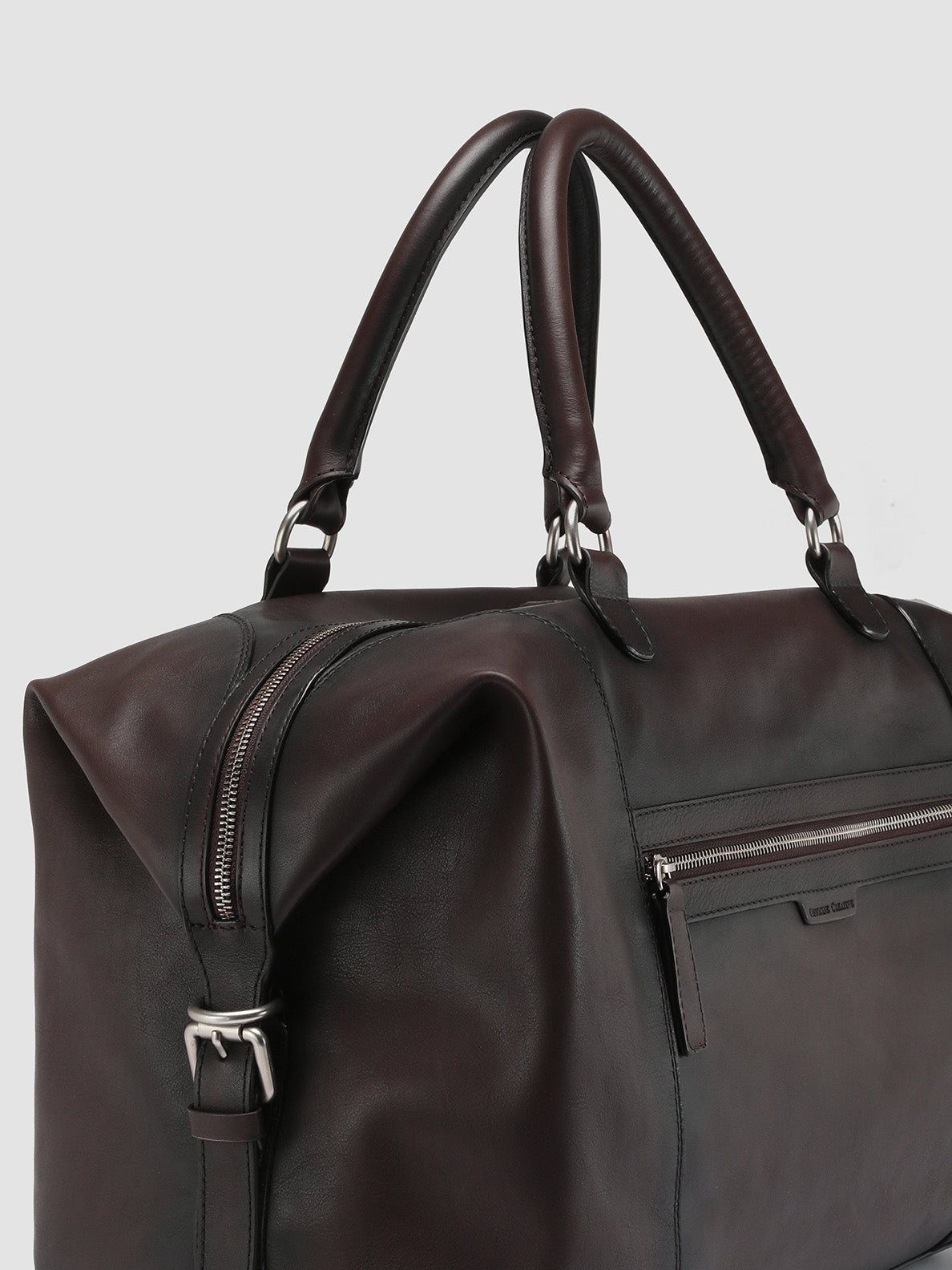 The Jules 002 weekender is a sophisticated and practical choice for the modern traveller. Handcrafted in Italy from brown leather, this spacious bag exudes luxury and durability, featuring two top handles and a detachable shoulder strap. The large main compartment is secured with a zipper and the side pockets are perfect for organising essentials.