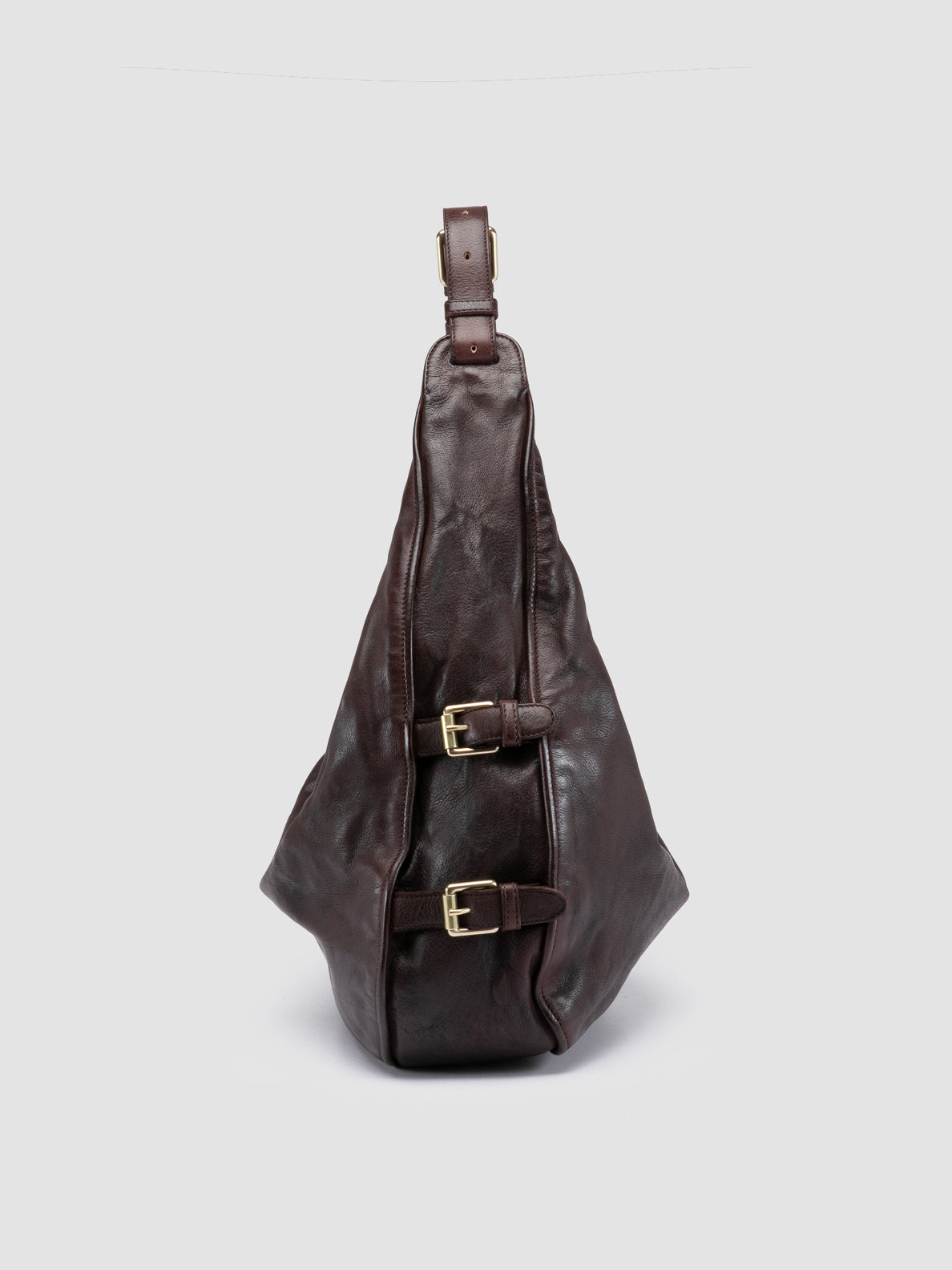 Handcrafted in Italy from deep-dyed brown leather, the Julie 015 shoulder bag features a crescent silhouette accented with adjustable strap and brass-tone buckles. A zip closure secures the interior.