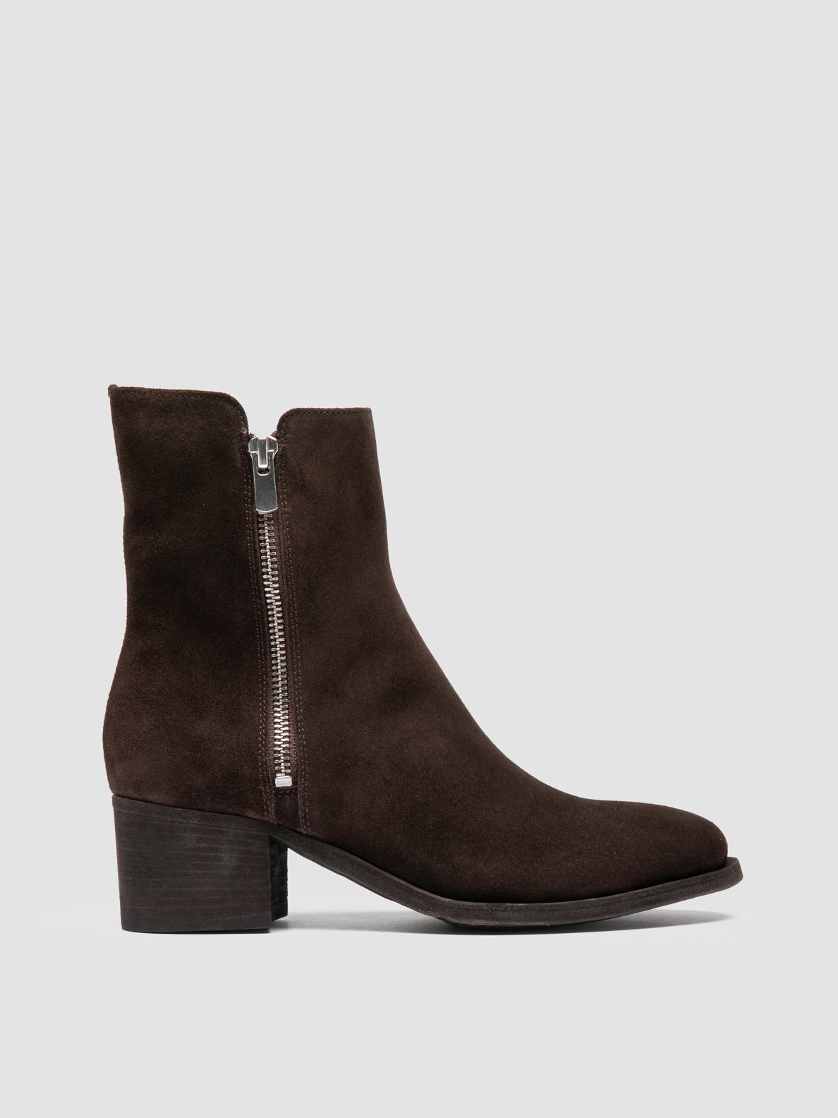 Perfect to wear all day long our Denner handcrafted ankle boots set on a stable block heel and reveal a supple dark brown suede upper. They feature an almond-toe silhouette comfortable zips on both sides front pleats and a leather sole with rubber pads on the bottom.