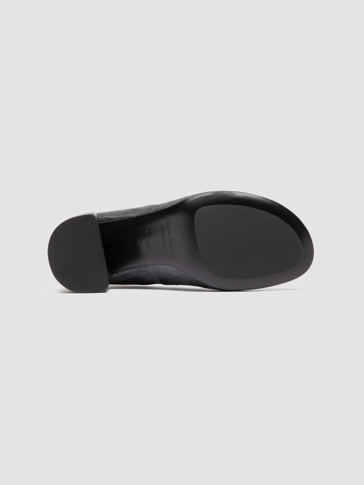 The Flore 009 Mary Jane shoes blend classic charm with modern comfort. The soft black leather upper features a rounded toe, front bow and elastic strap. A mid-height block heel and rubber-inserted sole ensure effortless wear.