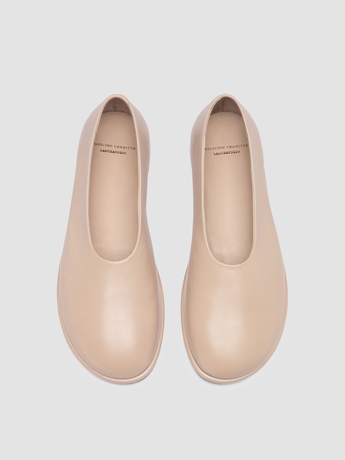 The Mienne 110 ballerina shoes are handcrafted in Italy and feature a smooth ivory leather upper that contours to the foot for a sleek, minimalist aesthetic. The soft silhouette is complemented by a discreet and flexible rubber sole.