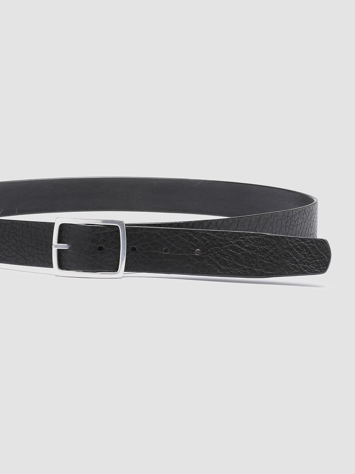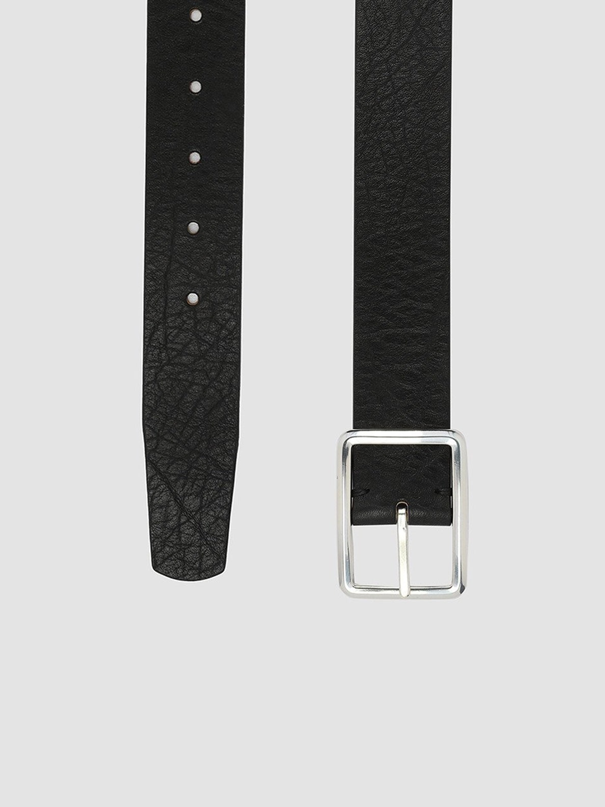 A bold expression of contemporary design. The OC Strip 10 belt is handcrafted from black leather with a distinctive textured finish, and features a square silver-tone metal buckle for a sleek, minimalistic aesthetic.