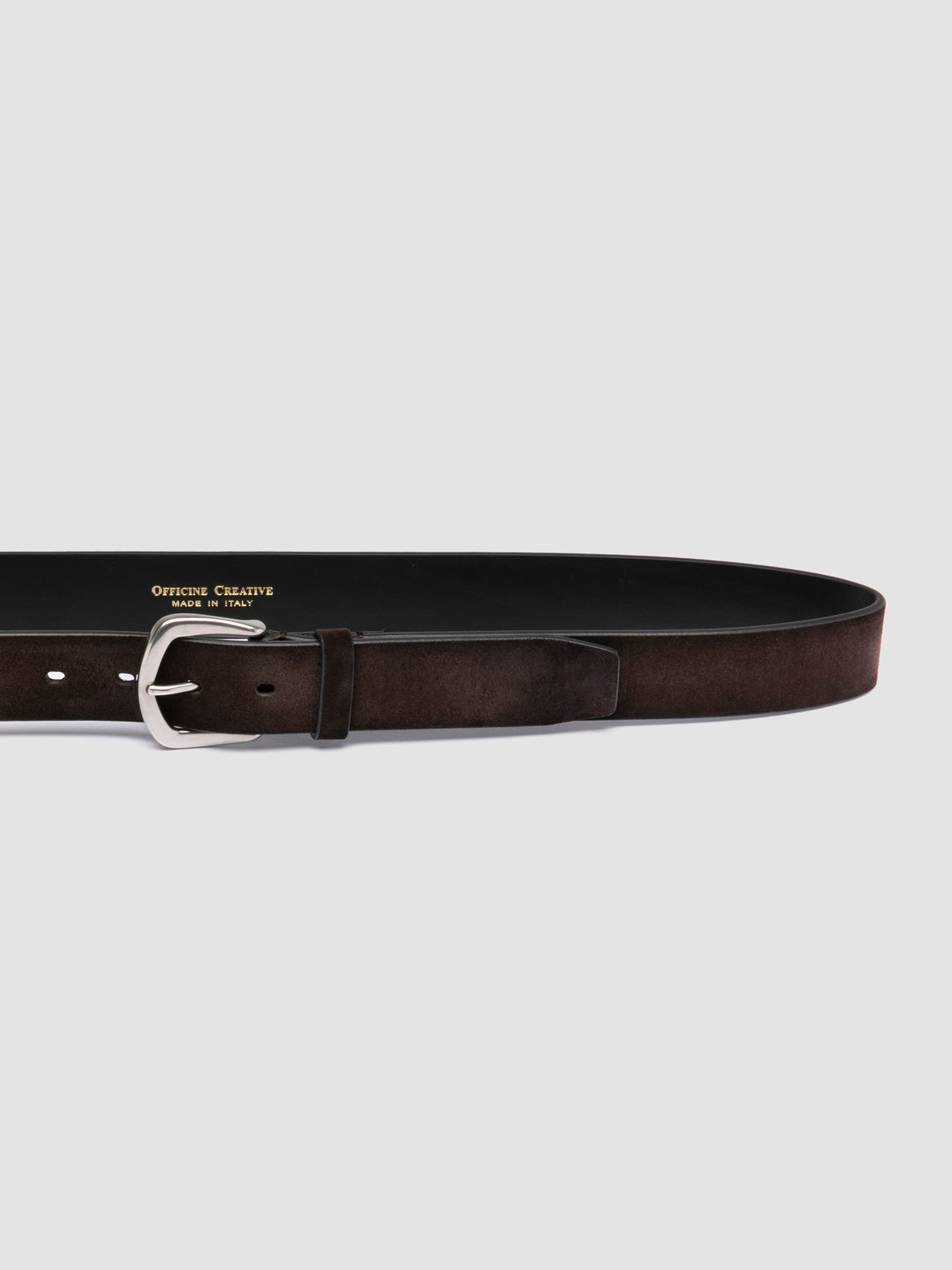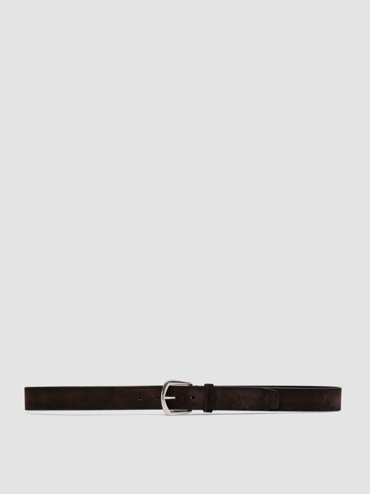 Handcrafted in Italy, the OC Strip 083 belt features an elegant dark brown suede with an airbrushed finish. The minimalist design is complemented by a silver-tone buckle, clean stitching and pointed tip to enhance the refined appeal.