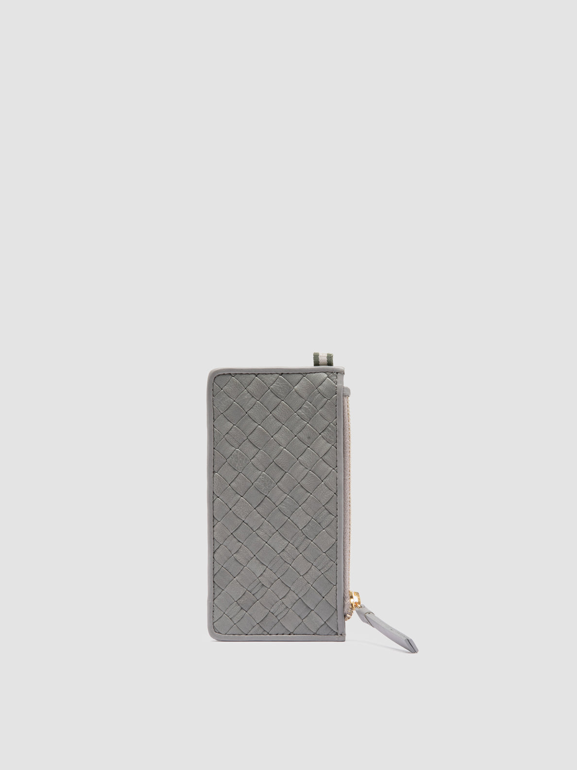 Made entirely by hand by our skilled craftsmen our Juliet card holder stands out thanks to its woven design in fine light blue leather. It features a gold-tone metal zip-fastened compartment six card slots logo lettering printed at front and our signature grosgrain loop tab at the side.