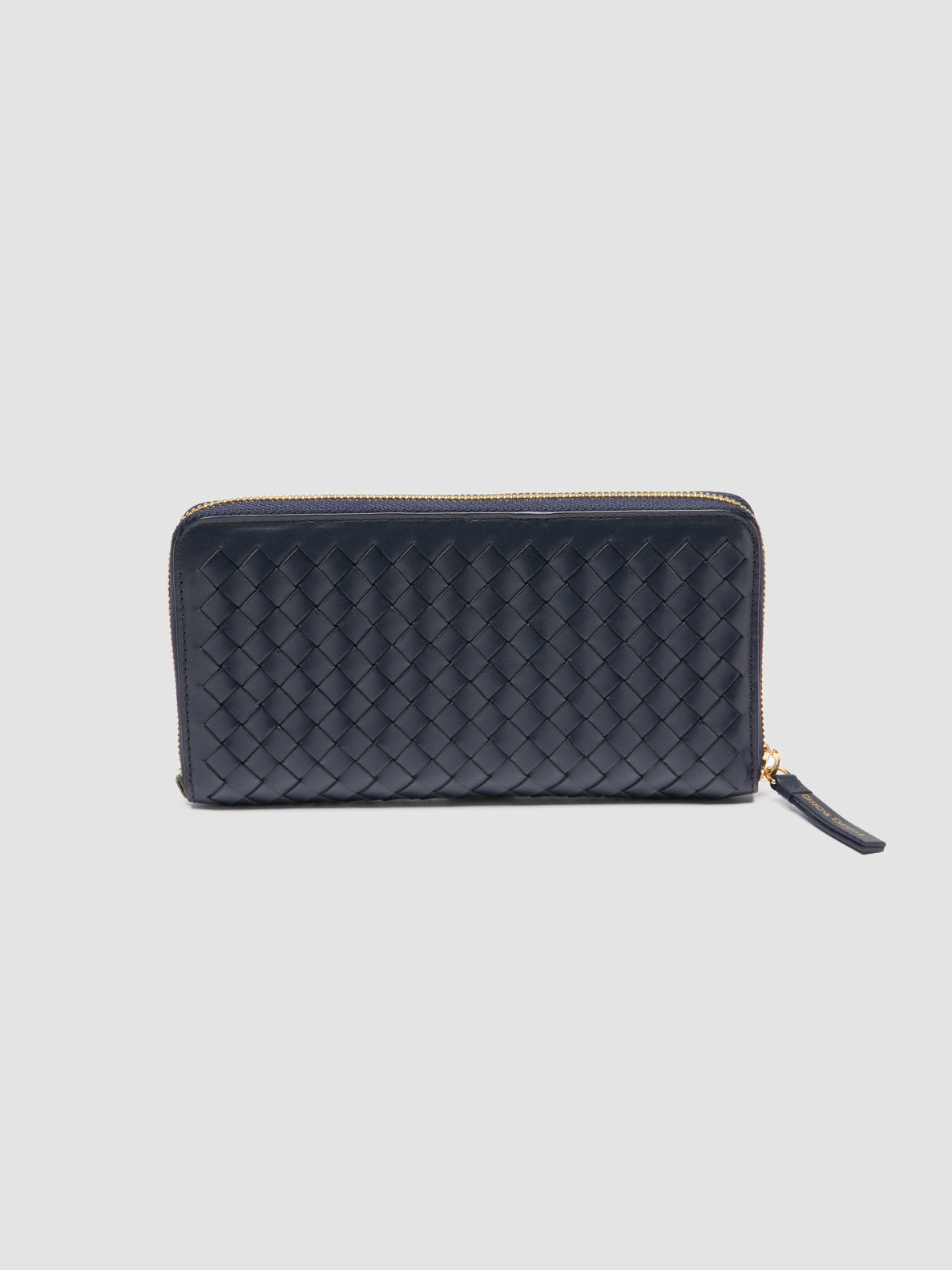 With a handwoven blue leather design, the Juliet 201 wallet features a zip-around closure, multiple card slots, an open compartment and a central zipped pocket for effortless organisation. The gold-tone logo adds a distinctive finish.
