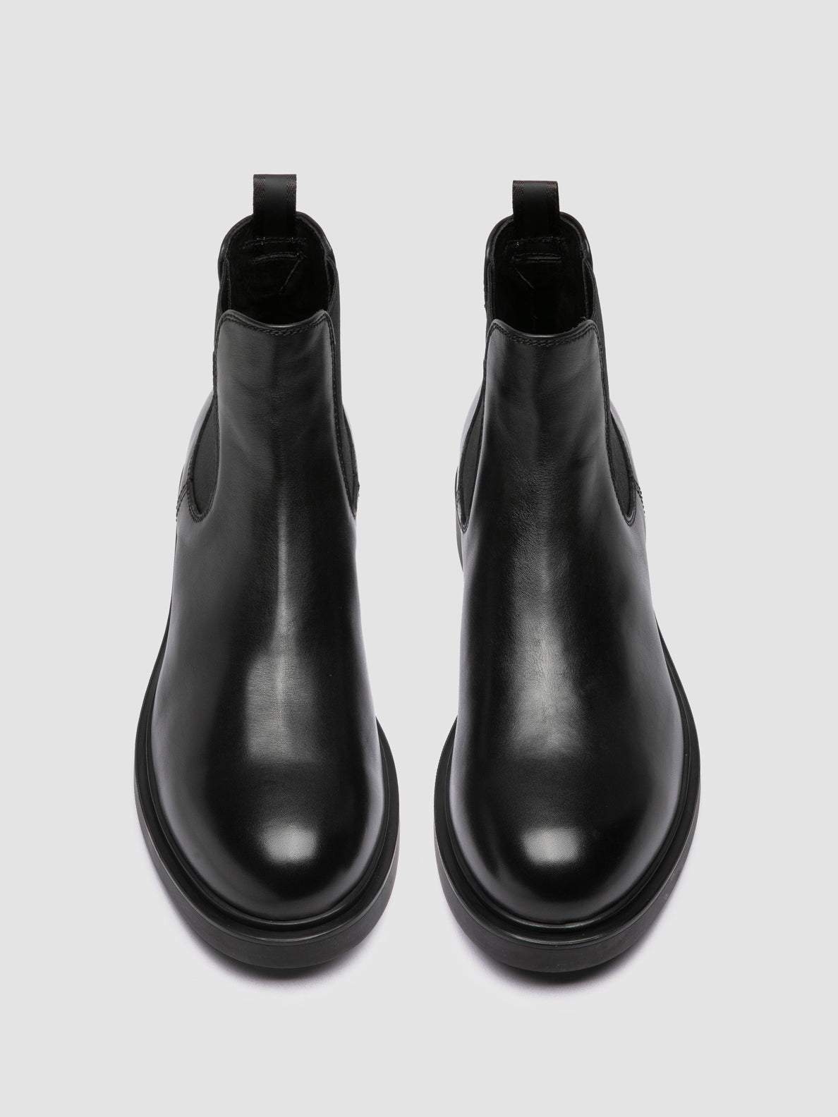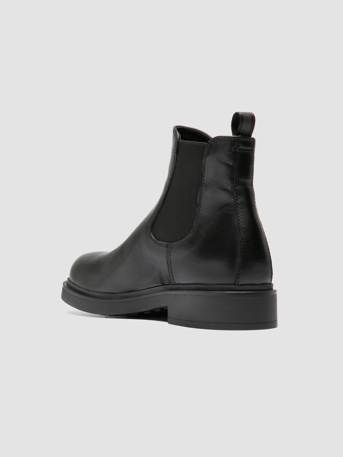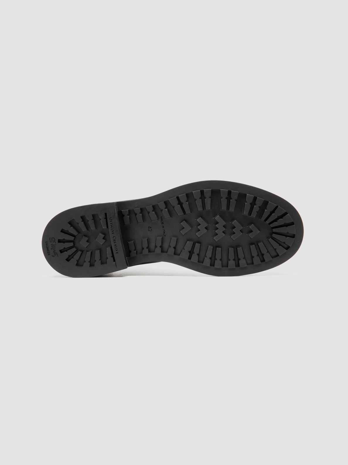 The Engineer 006 boots showcase a timeless Chelsea silhouette with elastic side panels, elevated by a sleek, polished finish. Handmade in Italy, they feature a robust construction in premium black leather and a rubber sole.
