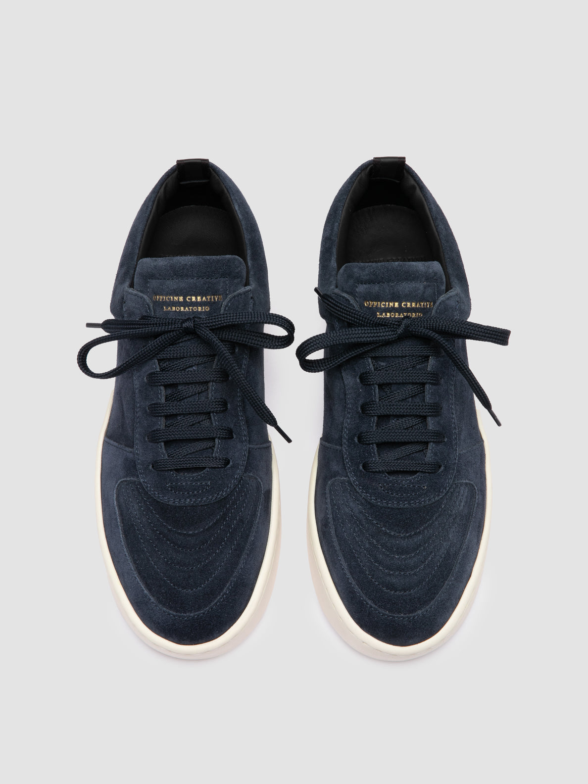 The Krab 001 sneakers combine a sporty attitude with elevated craftsmanship. Handmade in blued suede with stitched detailing, they sit on an extra-light EVA sole in contrast white for a bold yet comfortable stride.