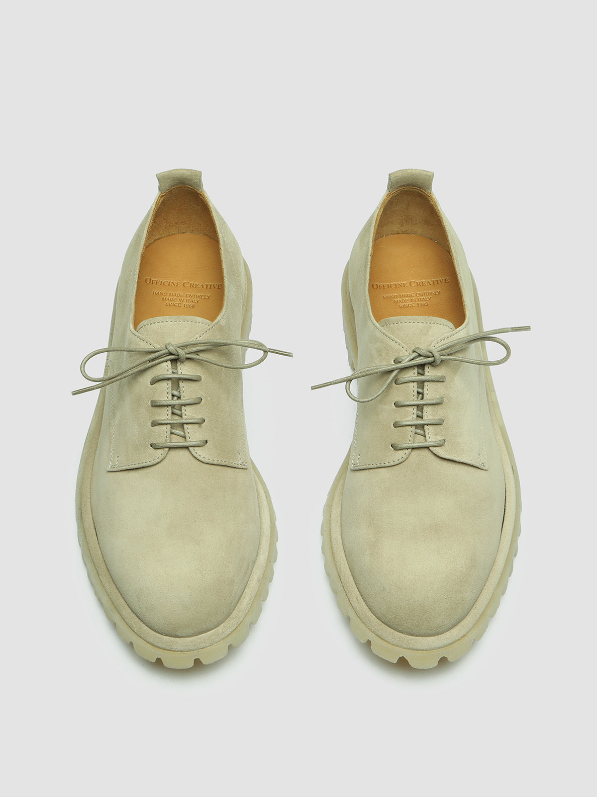 A lightweight design with bold presence and everyday ease. Handcrafted in Italy from soft taupe suede, the Spectacular 001 derbies feature a clean upper, tonal details and a chunky treaded sole in natural rubber.