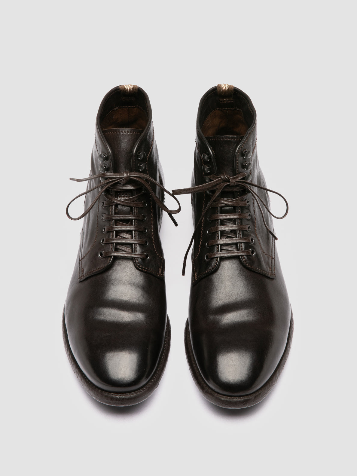 Lace-up Ankle Boots in dark brown leather with leather lining and flexible rubber sole.